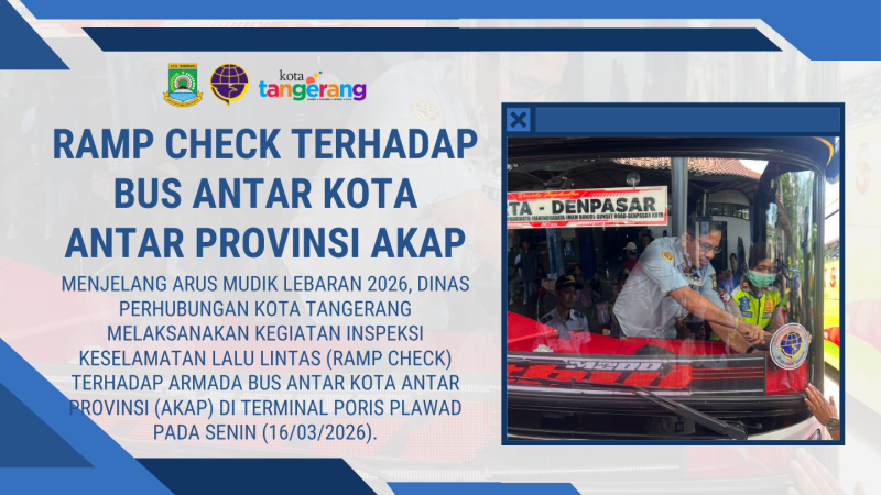 Menjelang arus mudik Lebaran 2026, Dinas Perhubungan Kota Tangerang melaksanakan kegiatan Inspeksi Keselamatan Lalu Lintas (Ramp Check) terhadap armada bus Antar Kota Antar Provinsi (AKAP) di Terminal Poris Plawad pada Senin (16/03/2026).